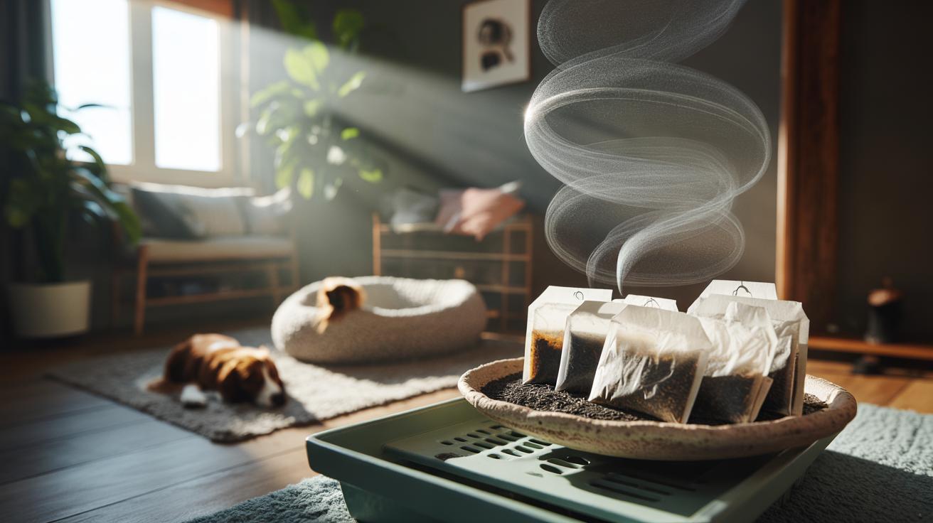 Target the hotspots. Slide dishes behind the litter tray, beneath a shoe rack, or under the hall console where the dog’s lead hangs. For soft furnishings, place a dish beneath the sofa or behind curtains rather than directly on textiles to avoid tea dust stains. In pet bedding zones, position them on a shelf above, close enough to intercept the odour plume yet out of paws’ reach. You’ll typically notice a calmer scent profile within 30–60 minutes, and a clearer room by the evening. Keep bags away from curious pets — tea contains caffeine, which they should not ingest.