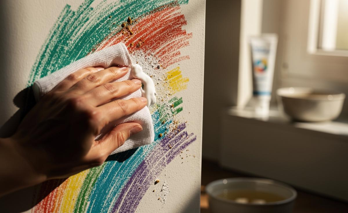 In a Leeds rental I once cleaned, a hallway mural spanning two metres vanished in 25 minutes using a low-RDA paste and microfibre—no repaint needed. The only near-miss came from overworking a matte section, which began to look shiny. Stop the moment pigment stops transferring to the cloth; over-polishing risks burnishing the finish. If marks persist, alternate with a tiny drop of mild dish soap and warm water to soften wax, then return to the paste. Stacked techniques beat brute force.